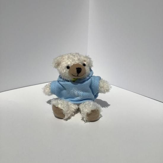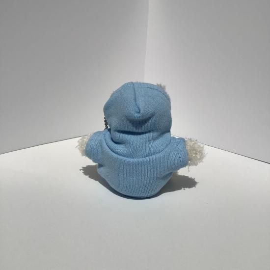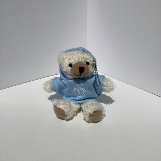 オーバーサイズのパーカーを着こなしている、ふかふかしたかわいいベアです。頭頂部にボールチェーンが付いているので、バッグに付けたり、チャックに付ければゆらゆら揺れて可愛いです。愛くるしいお顔で、造りもとてもしっかりしたベアに、1つ1つ手作りのフード付きパーカーを着せました。(一つ一つ丁寧に縫製されているので、こんなに小さいのにフードを被せる事も出来ます!)お店でも発売直後から人気者です。